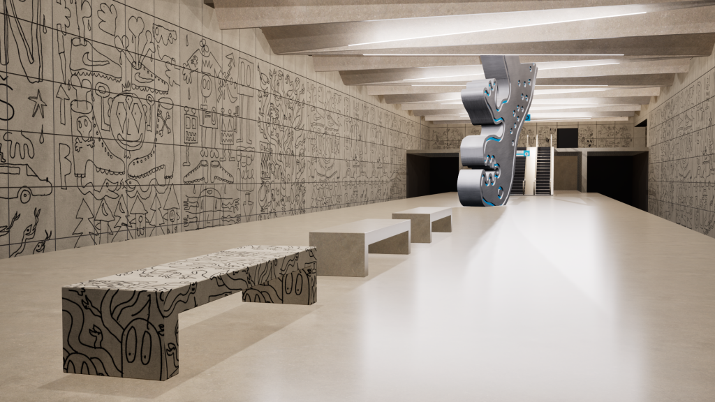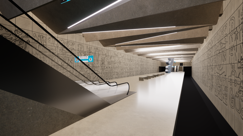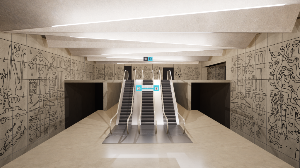 „Návrh představuje výrazný koncepční i generační posun v paletě děl, která se nově objeví v galerii pražského metra. Přesto, že se může zdát jako lehce extravagantní nebo provokativní, tak se vizuálně chová spíše neutrálně až minimalisticky. Jednou z jeho nejsilnějších stránek je hravost a také fakt, že prostupuje z nástupiště až na povrch nového náměstí, čímž ke svezení metrem přímo láká,“ dodává Anna Švarc, architektka metra a projektová manažerka DPP.