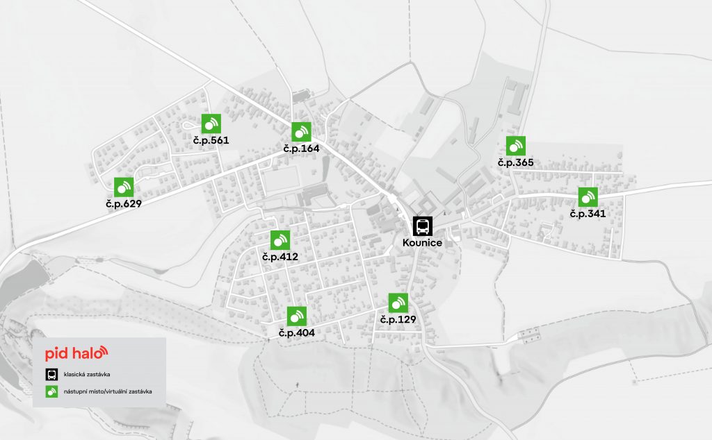 Virtuální nástupní místo funguje jako běžná zastávka, ale jen v mapách a aplikacích. V terénu žádný sloupek ani přístřešek nenajdete. Řidič poptávkového vozidla PID Haló vás vyzvedne na předem daném místě – typicky u konkrétního domu.