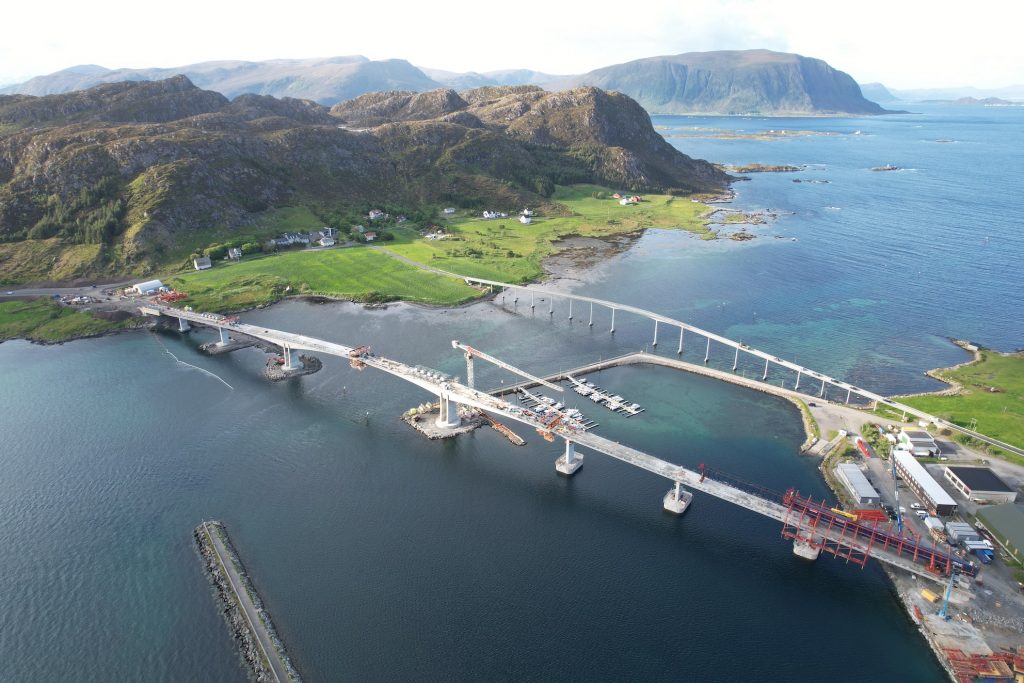 „V průběhu stavby jsme se potýkali s náročným počasím a větry, narazili jsme na naprosto nevyhovující podloží, betonovat jsme museli s ohledem na střídání přílivu a odlivu. Nyní jsme slavnostně zabetonovali poslední část viaduktu. Opět šlo o logisticky náročný manévr, kdy se beton musel transportovat potrubím od opěry a do výsuvné skruže – tato technologie se využívá právě pro rychlou výstavbu dlouhých mostů,“ vysvětlil Matěj Novotný, vedoucí projektu ze společnosti Metrostav Norge AS.