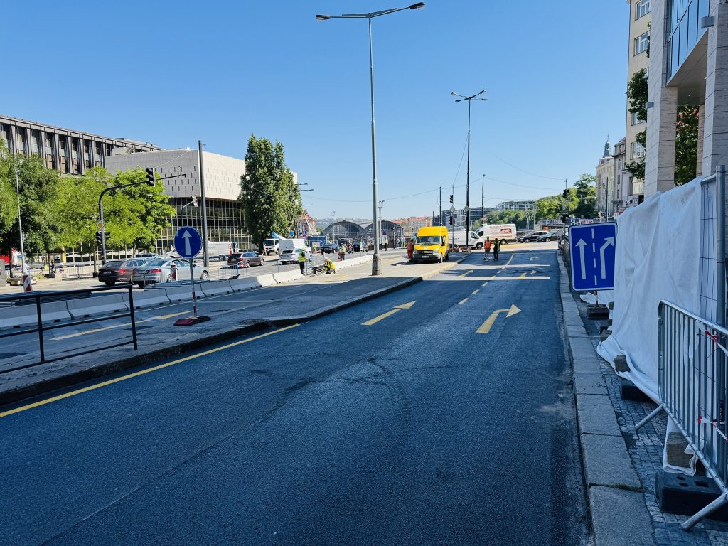 Praha zažila další krok ve výstavbě nové tramvajové trati u Národního muzea. V prostoru, kde ještě nedávno jezdily tramvaje, dnes leží asfalt. Místo kolejí tady vznikla dočasná silnice, na kterou byly dnes dopoledne svedeny dva pruhy magistrály ve směru na Holešovice.