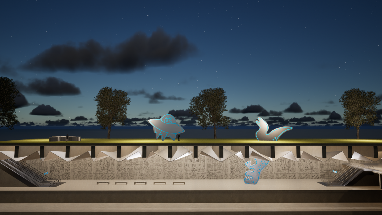 „Návrh představuje výrazný koncepční i generační posun v paletě děl, která se nově objeví v galerii pražského metra. Přesto, že se může zdát jako lehce extravagantní nebo provokativní, tak se vizuálně chová spíše neutrálně až minimalisticky. Jednou z jeho nejsilnějších stránek je hravost a také fakt, že prostupuje z nástupiště až na povrch nového náměstí, čímž ke svezení metrem přímo láká,“ dodává Anna Švarc, architektka metra a projektová manažerka DPP.