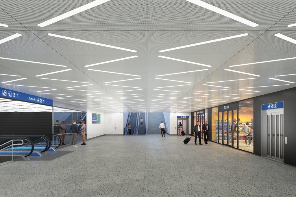 Podzemní nádraží na letišti budou tvořit dvě koleje, mezi kterými se bude nacházet oboustranné nástupiště. Cestující se z něj dostanou pohodlně do obou letištních terminálů.