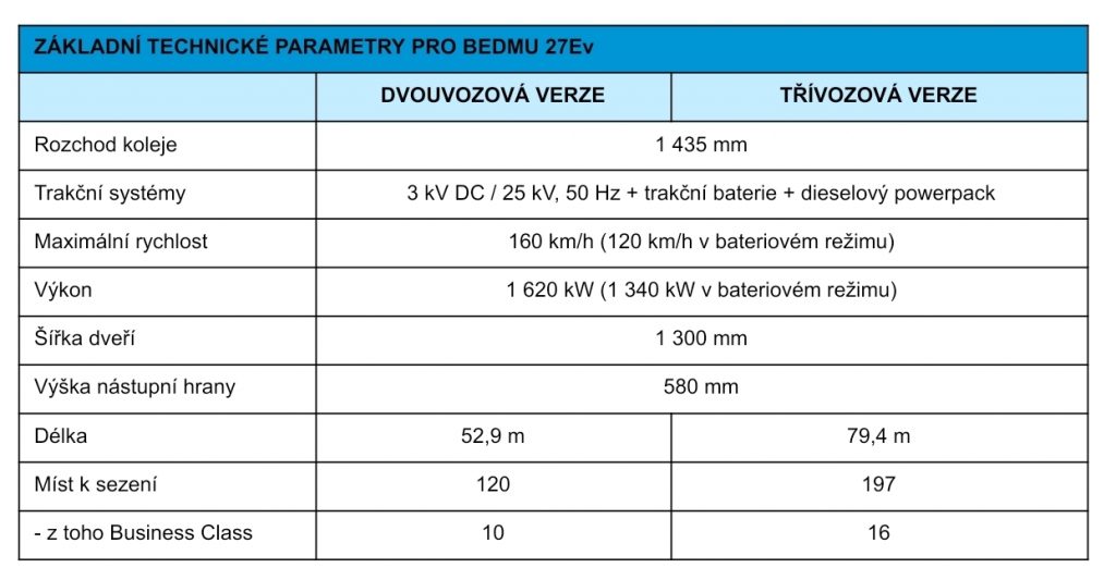 Škoda Group a RegioJet oznámily uzavření kontraktu v hodnotě přes 9 miliard korun, jehož výsledkem bude dodávka 34 hybridních vlakových jednotek (18 dvouvozových a 16 třívozových) nového typu BEDMU (Battery Electric Diesel Multiple Unit). Tyto vlaky jsou tím nejefektivnějším řešením, které zajistí ekologicky šetrnou a komfortní dopravu pro cestující na klíčových linkách v severovýchodních Čechách, které dosud nejsou elektrizovány. Nové vlaky budou nasazeny do provozu od prosince 2029.Cestující se mohou těšit na zrychlení přepravy a také lepší zákaznický servis.