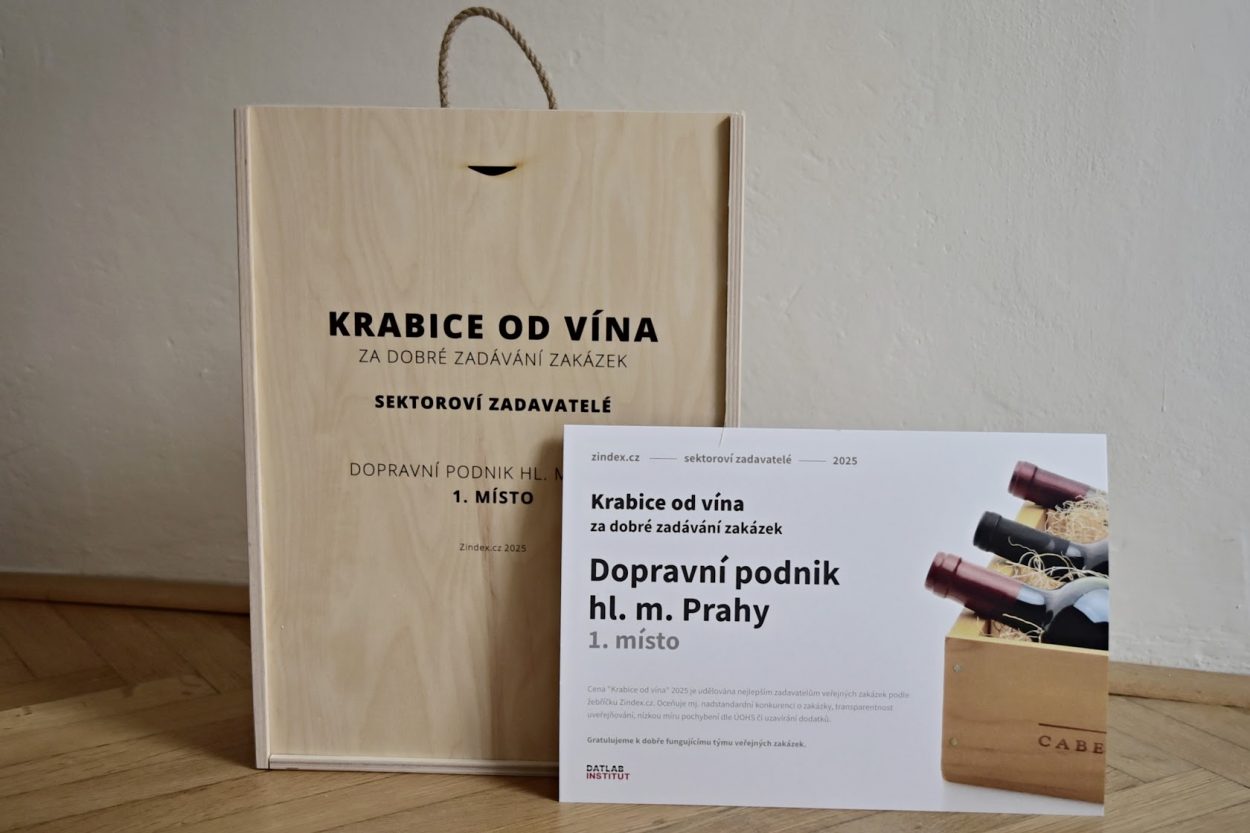 V letošním ročníku hodnocení zadavatelů veřejných zakázek podle Zindexu Dopravní podnik hl. m. Prahy (DPP) vyhrál v kategorii Sektoroví zadavatelé. Žebříček Zindex.cz hodnotí více než 200 zadavatelů veřejných zakázek na základě reálných dat v jedenácti dílčích ukazatelích, např. v transparentnosti, schopnosti vybírat firmy podle kvality, úspěšnosti ve sporech s ÚOHS, v kvalitě dat na profilu nebo ve frekvenci přímých zadání u zakázek malého rozsahu. Vítězové obdrželi cenu v podobě tradiční „Krabice od vína“, ve které je víno nahrazeno oceněním.