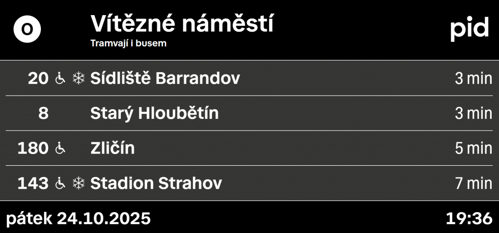 Organizátor Pražské integrované dopravy ROPID přichází s novou funkcí, která potěší nejen fanoušky veřejné dopravy, ale může být užitečná i pro provozovatele různých podniků. Na svém webu nyní umožňuje komukoli bezplatně si vygenerovat vlastní odjezdovou tabuli, která designem i daty odpovídá té, kterou cestující znají z moderních zastávkových panelů.