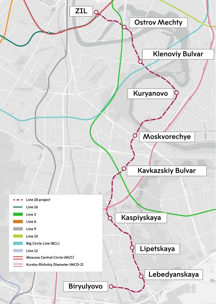 Plány na rozvoj metra však linkou 16 nekončí. V letošním roce bude zahájena výstavba linky 18 (Biryuljovskaya), která obslouží čtvrti Biryuljovo Východní a Západní a zlepší dopravní obsluhu dalších šesti moskevských čtvrtí. Ve výstavbě jsou již stanice ZIL, Ostrov Mečty a Kleňový bulvár, sedm dalších stanic je ve fázi plánování. Linka 18 je naplánovaná v délce 22,2 kilometrů s deseti stanicemi a má umožnit přestupy na Zamoskvoreckou, Troitskou, BKL, MCC a Pavěleckou linku.