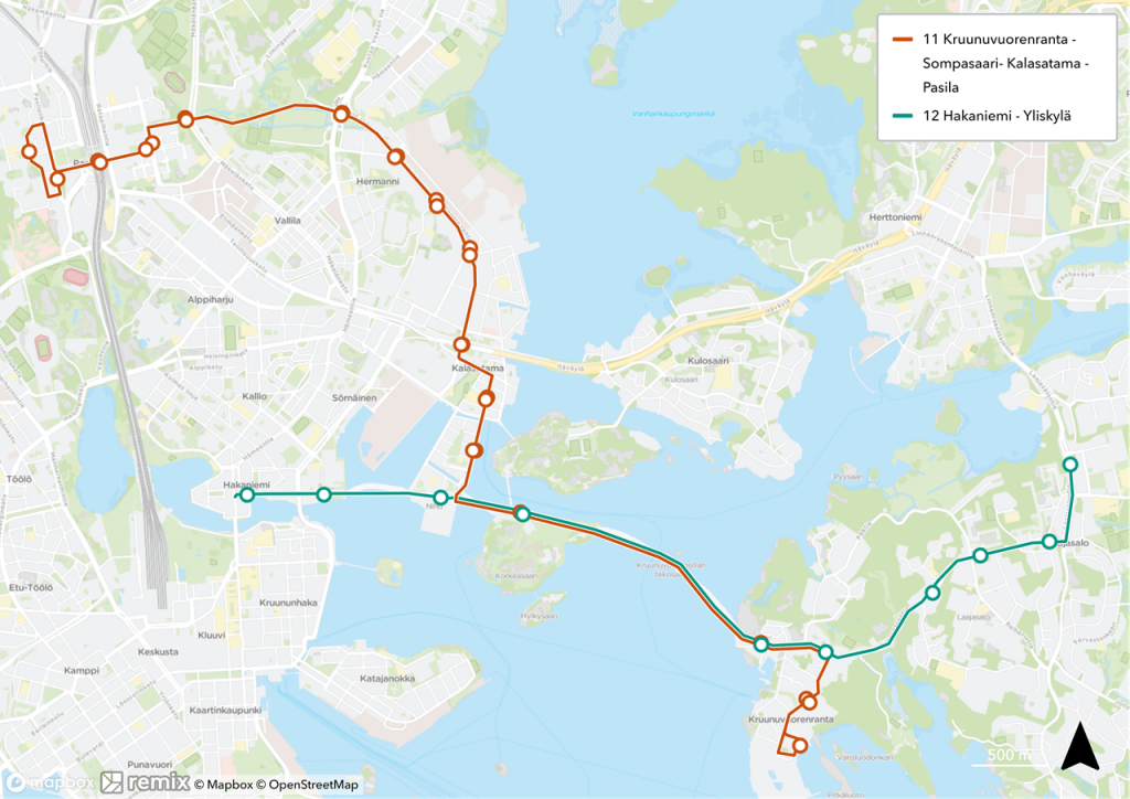 Projekt rozšíření tramvajové trati z centra Helsinek do východních předměstí Laajasalo, Korkeasaari a Kalasatama úspěšně pokračuje. V březnu byl dokončen 135 metrů vysoký pylon ve tvaru diamantu, který představuje nejvyšší mostní konstrukci v celém Finsku a zároveň konstrukčně kritický prvek stavby. Dokončení nové infrastruktury známé jako Kruunusillat (Korunní mosty) je plánováno do roku 2027.