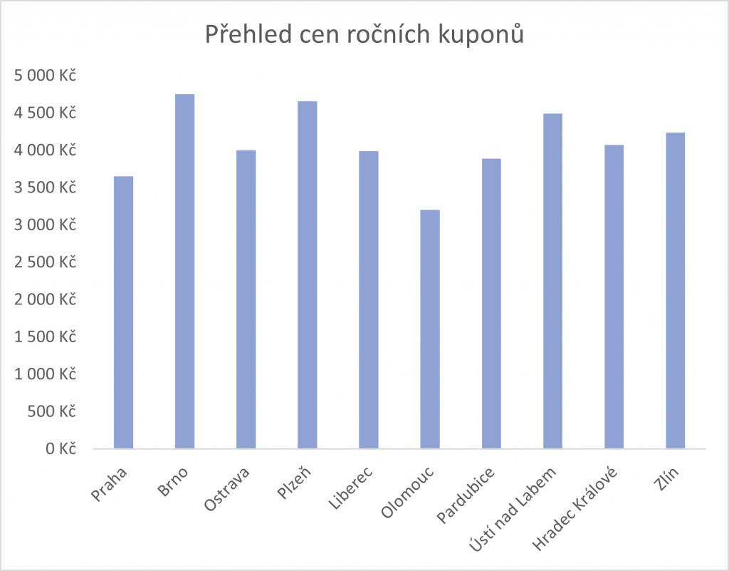 Nejlevněji se cestující svezou v Olomouci, kde roční kupon pro dospělého vyjde na pouhých 3 200 korun. Hanácká metropole tak dokazuje, že kvalitní městská doprava nemusí nutně znamenat vysoké náklady pro cestující. Jen o něco dražší je hlavní město – v Praze stojí roční kupon 3 650 korun, což je vzhledem k rozsahu a hustotě pražské dopravní sítě velmi konkurenceschopná cena.