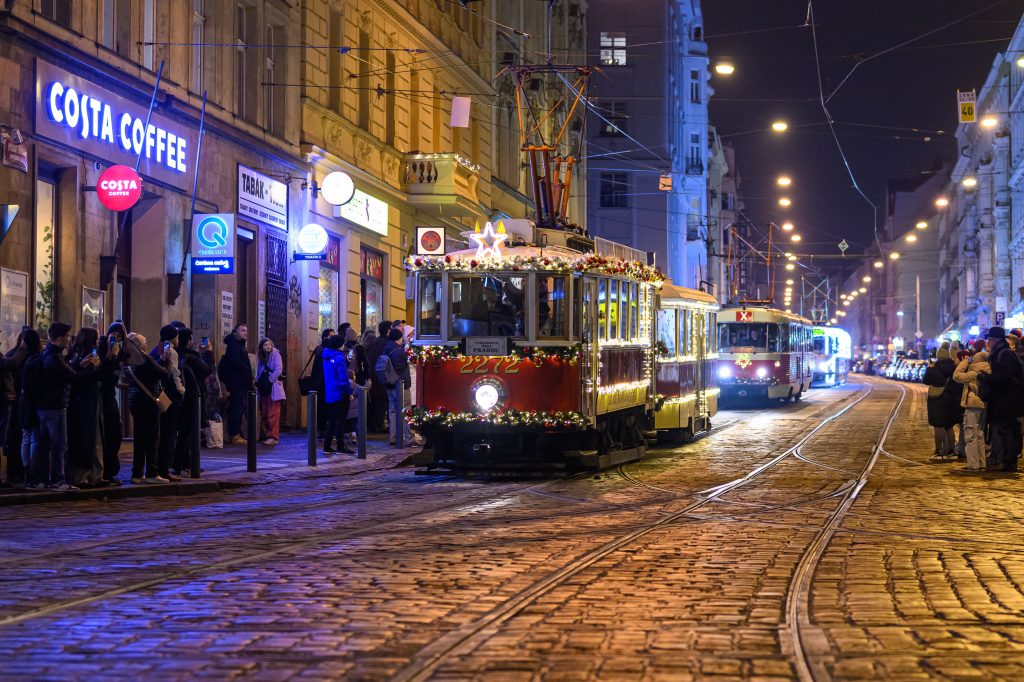 V sobotu 29. listopadu v podvečer proběhlo ve střešovické vozovně slavnostní rozsvícení vánoční flotily Dopravního podniku hl. m. Prahy (DPP). Letošní sváteční výprava přináší několik premiér – poprvé vyjel ozdobený tříčlánkový trolejbus na linu 59 a historická tramvaj Tatra K2. Cestující mohou vánoční vozy potkávat v ulicích až do Tří králů, tedy do 6. ledna 2026.