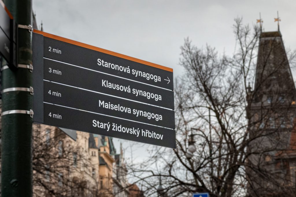 Dalších 8 prvků tvoří textové směrovky instalované převážně na stávající sloupy veřejného osvětlení, což minimalizuje zásah do veřejného prostoru. U jednotlivých cílů najdete i přibližný docházkový čas k nim. Díky novým prvkům budou odstraněny původní hnědé směrovky, které byly často umístěné na samostatných sloupcích. I když byly v blízkosti jiné nosiče, na které bylo možné navigační systém umístit.