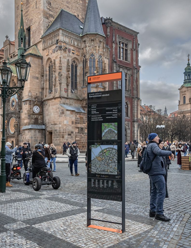 Navíc hovoří stejným jazykem jako nový navigační systém v metru nebo na zastávkách MHD. Lokalita byla pečlivě vybrána s ohledem na fakt, že se jedná o jednu z nejvytíženějších pěších tras v Praze, kterou projdou denně tisíce turistů z celého světa. A právě tato místa jsou často tím prvním, co návštěvníci v Praze zažijí. Proto je extrémně důležité, jaký na ně Praha udělá první dojem, a je potřeba, aby k nim navigační systém promlouval co nejvíce univerzálním jazykem, tedy pomocí map.