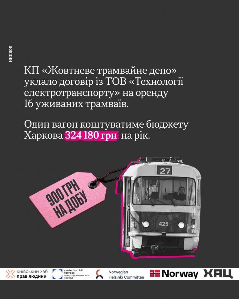 V přepočtu tak město platí za jeden vůz 324 180 UAH ročně, což odpovídá zhruba 900 hřivnám za den za každou tramvaj. Podle protikorupčních analytiků je tato cena dlouhodobě nevýhodná. Od zavedení tohoto schématu v roce 2017 již Charkov vyplatil soukromým subjektům za pronájmy více než 30,3 milionu UAH, a to bez započtení nejnovější smlouvy.