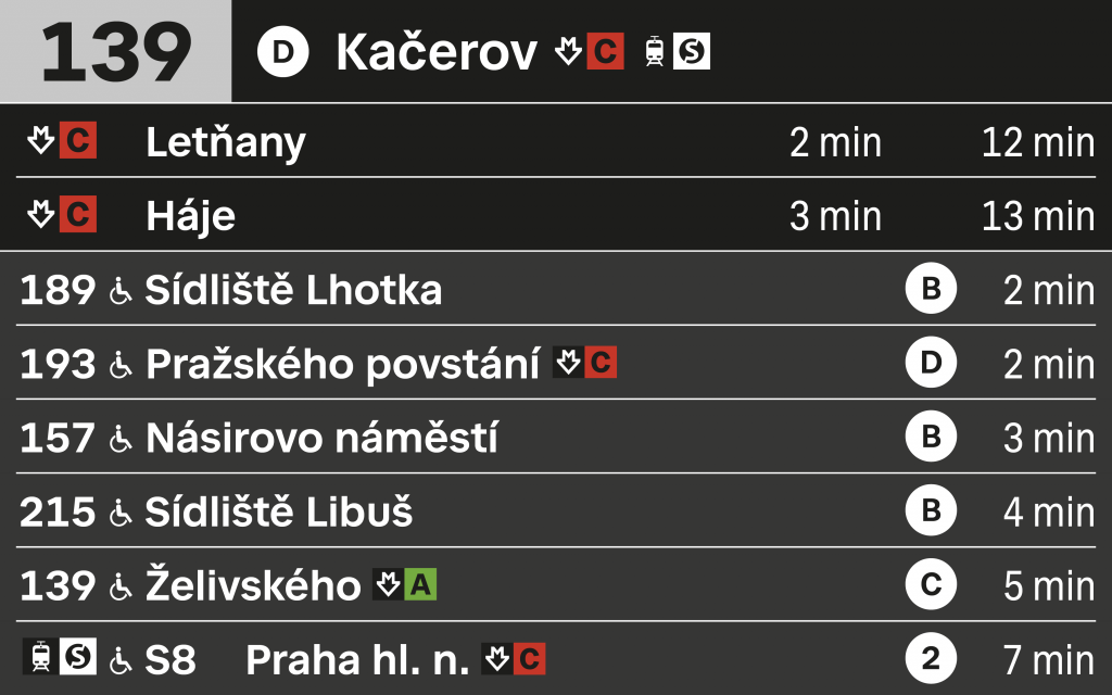 - Kódy nástupišť: U jednotlivých linek se zobrazují konkrétní kódy nástupišť (např. v terminálech), což usnadňuje orientaci při výstupu z vozidla. Tyto kódy jsou již nyní využívány ve vyhledávačích spojení a postupně se objevují i na fyzických označnících.
