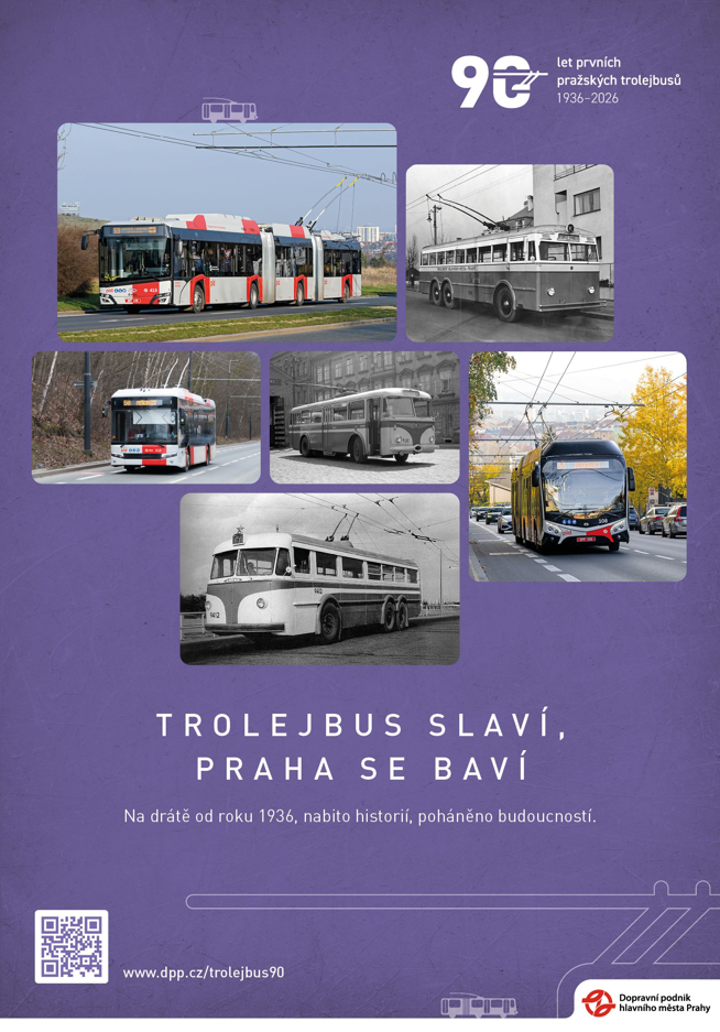 Hlavní město Praha a Dopravní podnik hl. m. Prahy (DPP) si letos připomenou 90 let od okamžiku, kdy se v ulicích metropole poprvé objevily trolejbusy. Dne 28. srpna 1936 byl zahájen provoz na první pražské trolejbusové trati Střešovice – Svatý Matěj, obsluhované linkou K. Šlo o vůbec první moderní trolejbusovou trať v tehdejším Československu a jeden z nejvýznamnějších milníků v historii pražské městské dopravy. V rámci připomínky 90 let trolejbusů v Praze připravil DPP celou řadu akcí v podobě dnů otevřených dveří, tematických jízd historických vozidel, nebude chybět ani výstava ve vozovně Střešovice a další doprovodný program pro veřejnost. Vyvrcholením těchto oslav bude první zářijový víkend, kdy se uskuteční hlavní část programu. Podrobnosti budou postupně zveřejňovány na webu DPP: www.dpp.cz/trolejbus90. Slogan letošních oslav zní: TROLEJBUS SLAVÍ, PRAHA SE BAVÍ.