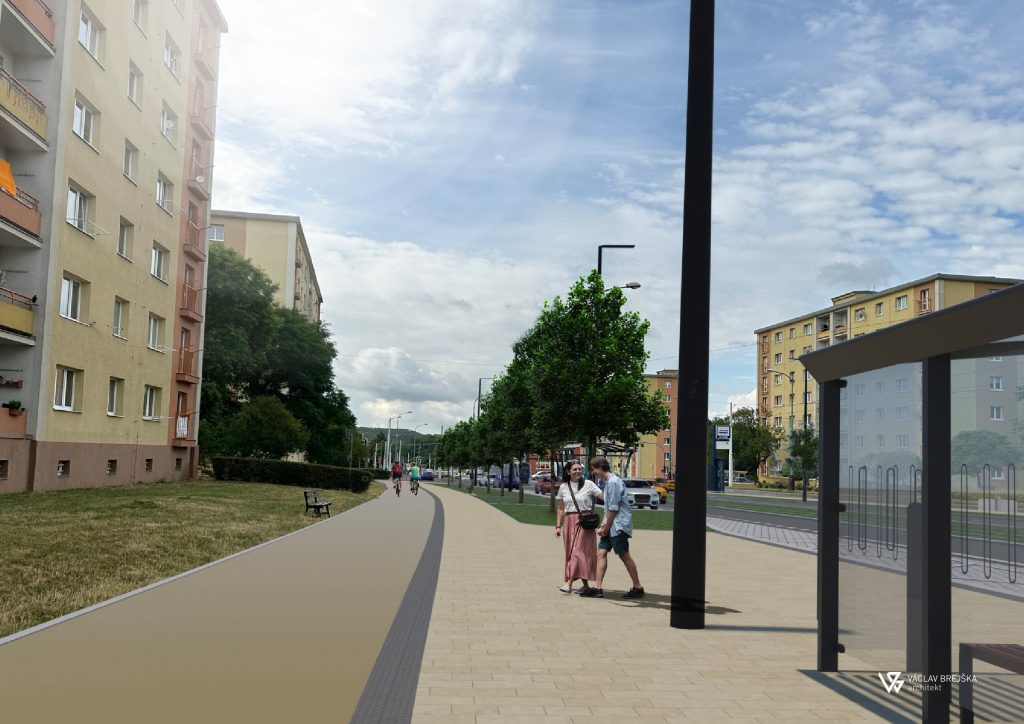 „Až se v roce 2029 poprvé svezeme po modernizované třídě Budovatelů, oceníme především celkovou uživatelskou přívětivost celé tramvajové trati – nástupiště budou přístupnější, vybavená tak, aby v jakékoli části roku poskytla možnost čekat na tramvaj či autobus komfortně a i samotná jízda tramvají bude rychlejší, plynulejší a výrazně méně hlučná. A protože tramvajová doprava je pouze jedním dílem skládačky, který tvoří nejvýznamnější ulici v Mostě, snažili jsme se během přípravy o celou řadu dalších zlepšení, která oceníme i když přímo tramvají nejedeme“, říká architekt Václav Brejška, který je autorem architektonické podoby modernizované tramvajové trati.